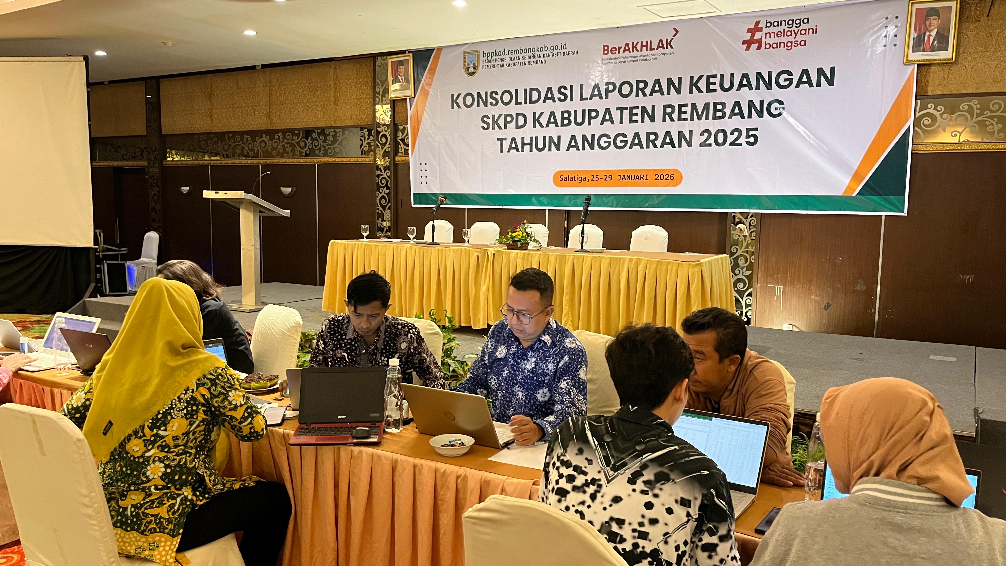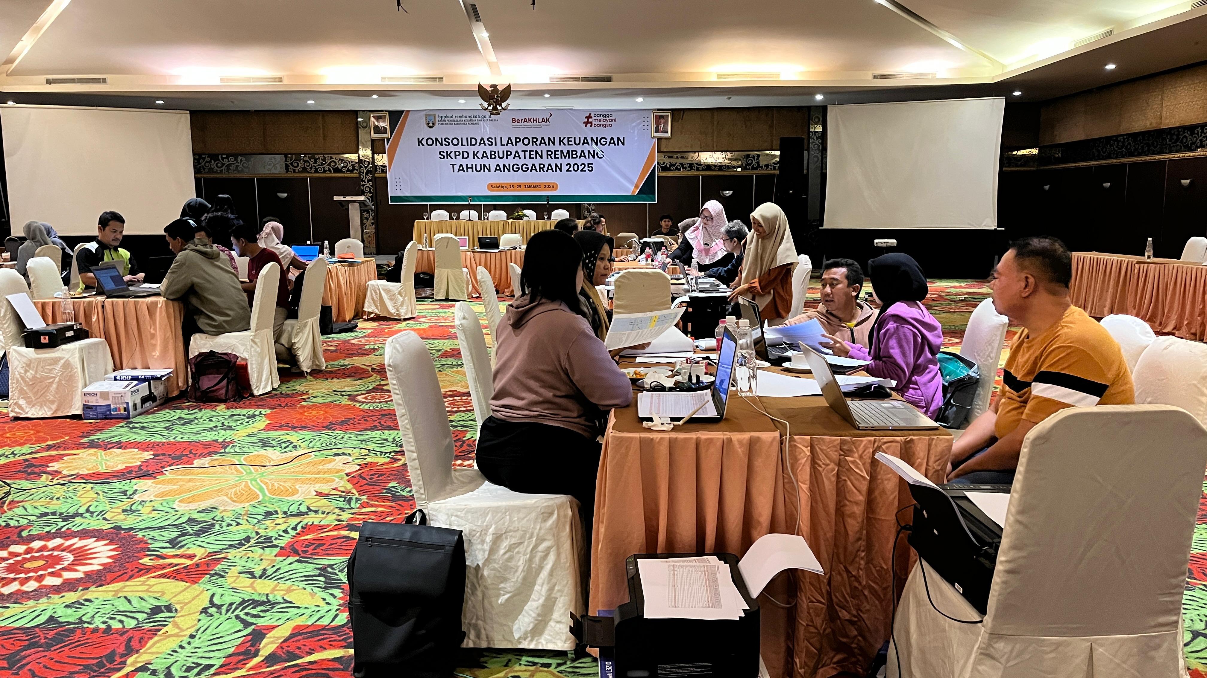 SALATIGA, 25 Januari 2026 – Badan Pengelolaan Pendapatan, Keuangan, dan Aset Daerah Kabupaten Rembang (BPPKAD) secara resmi menyelenggarakan kegiatan Konsolidasi Laporan Keuangan Satuan Kerja Perangkat Daerah (SKPD) untuk Tahun Anggaran 2025. Acara ini berlangsung di Aula bidang Aset BPPKAD Kab Renbang dengan menghadirkan seluruh Pejabat Penatausahaan Keuangan (PPK) dan bendahara dari berbagai instansi daerah.