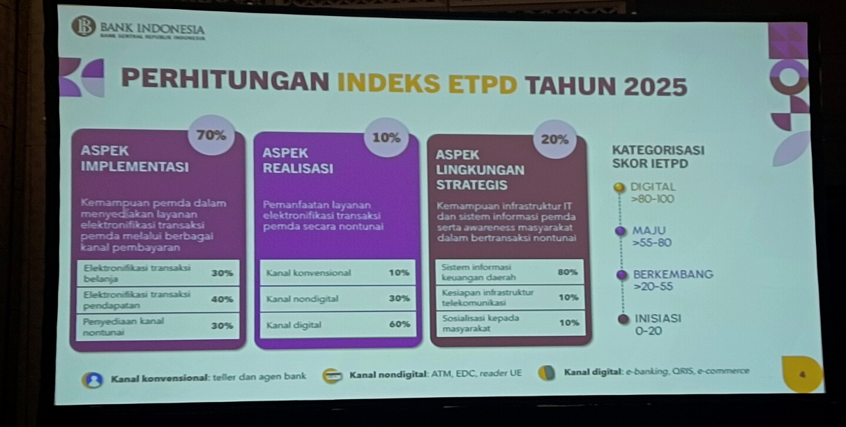 Semarang— Bank Indonesia KPw Jawa Tengah (Semarang) Mengundang Tim TP2DD wilayah Jateng tanggal 14 s/d 15 Januari 2026 di Hotel Padma Semarang. Pertemuan dihadiri perwakilan Pemprov. Jateng dan 17 pemda dibawah pengawasan BI KPw dan Bank Jateng Selaku Bank RKUD Jawa Tengah. Untuk Melakukan pengisian Survei IETPD Semester 2 Tahun 2025 di Hotel Padma Semarang. Selain itu dilakukan asistensi (pendampingan) hasil pengisian Survei IETPD yang telah diisi daerah. Adapun pengisian Survei IETPD Semester 2 Tahun 2025 akan diadakan tanggal 5 hingga 23 Januari 2026 dengan menggunakan data 1 Januari s/d 31 Desember 2025.